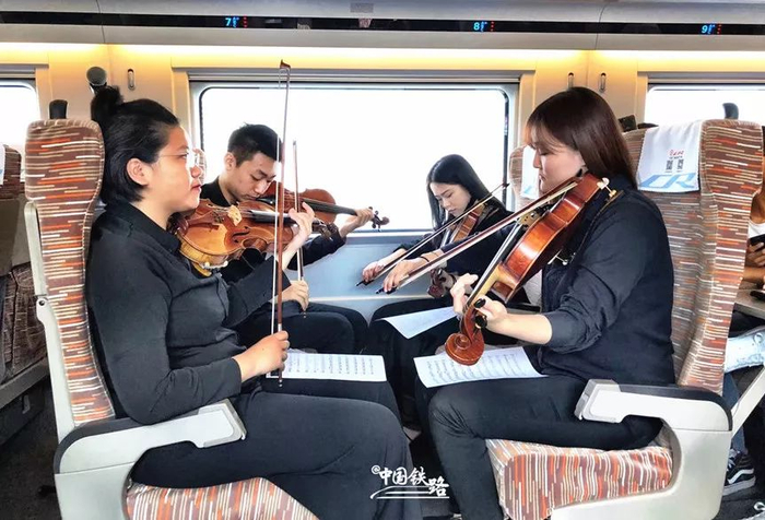 下图:2018年5月,高铁音乐会在京津城际列车上举行。孙晓远摄