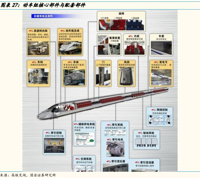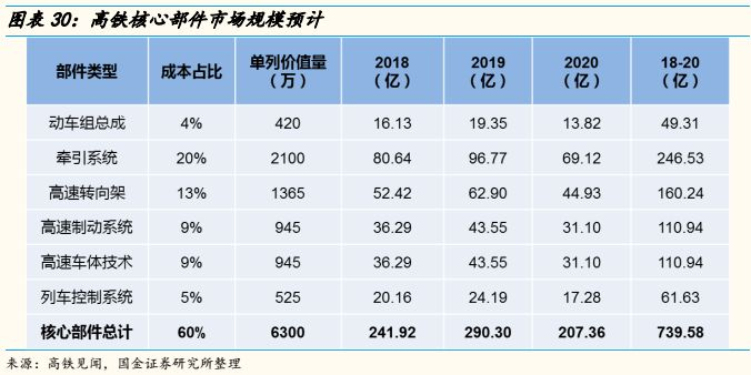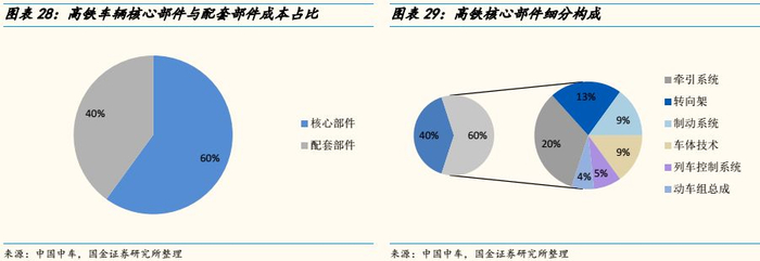 动车组的成本构成当中,可划分为两大部分核心部件与配套部件。其中,核心部件占比约60%,配套部件占比约40%。