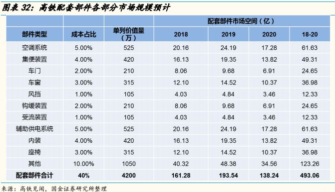 高铁车辆配套部件主要为空调、车门、车窗、座椅、集便装置、车内装饰材料等,以提高旅客的乘坐舒适度为主要目的。