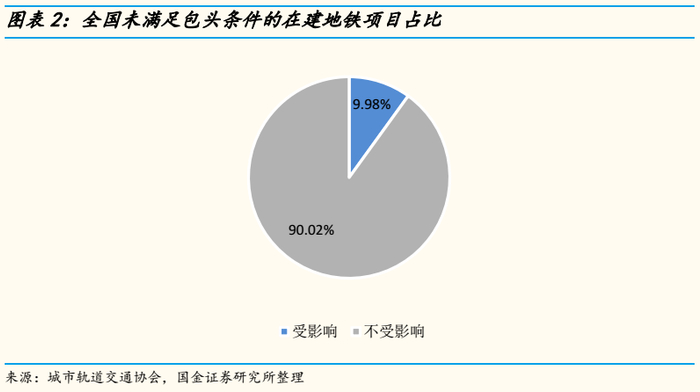 2、地铁项目审核收紧:2017年末,包头地铁项目被叫停,发改委对地铁新规划项目的批复更为审慎,要求对全国轨道交通建设情况进行重新评估和分类管理,再行启动审批工作。国内地铁建设面临的政策不确定性陡然增加,若以包头为标准进行筛选,则全国在建项目受影响比例接近10%。
