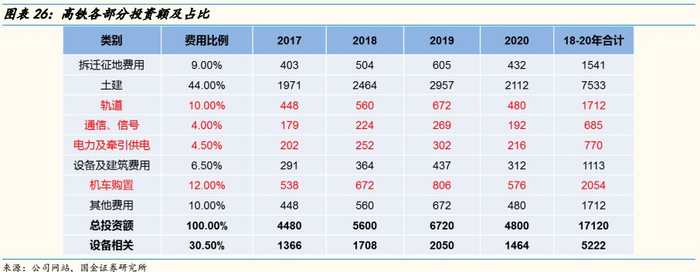 设备相关投资有4项,其中车辆购置(12%)、轨道(10%)、电力及牵引供电(4.5%)、通信信号(4%)。