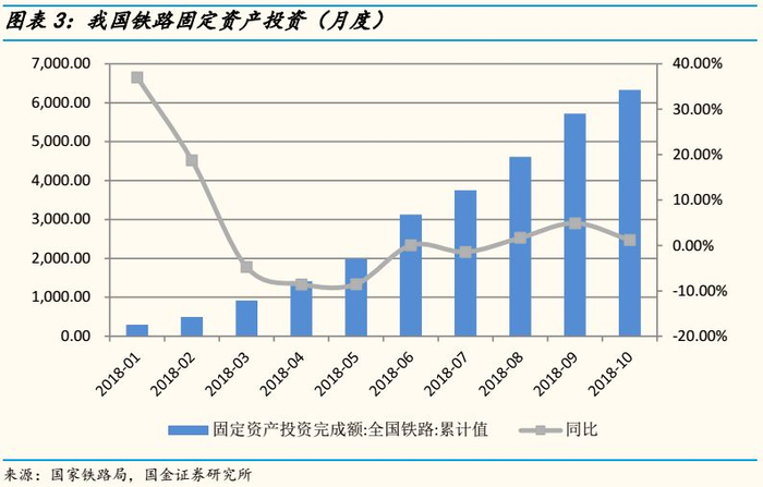 1、铁路总投资重回8000亿:今年8月铁总确认,在铁路机车车辆投资增长和基建加速推进双重刺激下,2018年铁路固定资产投资额将重返8000亿以上。年初计划总投资下调的预期得以修正,从实际数据表现来看,前10月铁路固定资产投资重回增长,1-10月累计投资6331亿、增长1.2%。