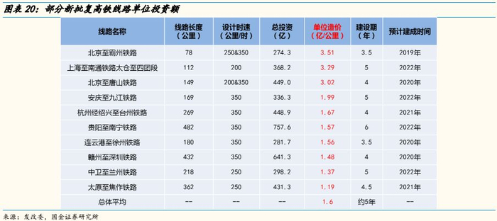 高铁建设成本主要影响因素有两个:一是速度等级,速度等级越高、建设成本越高;二是区域位置,北京、上海等一线城市新建高铁成本较高。