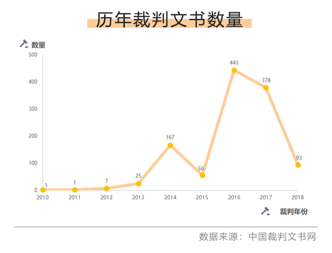 其实,有关音乐版权的争议从未停止,因音乐版权纠纷而打起的官司也不在少数。在中国裁判文书网上以“音乐版权”为关键词进行检索,共得到结果1185条,时间跨度为2010年5月30日至2018年10月15日,且自2016年起每年的裁判文书数量较往年大幅增加。