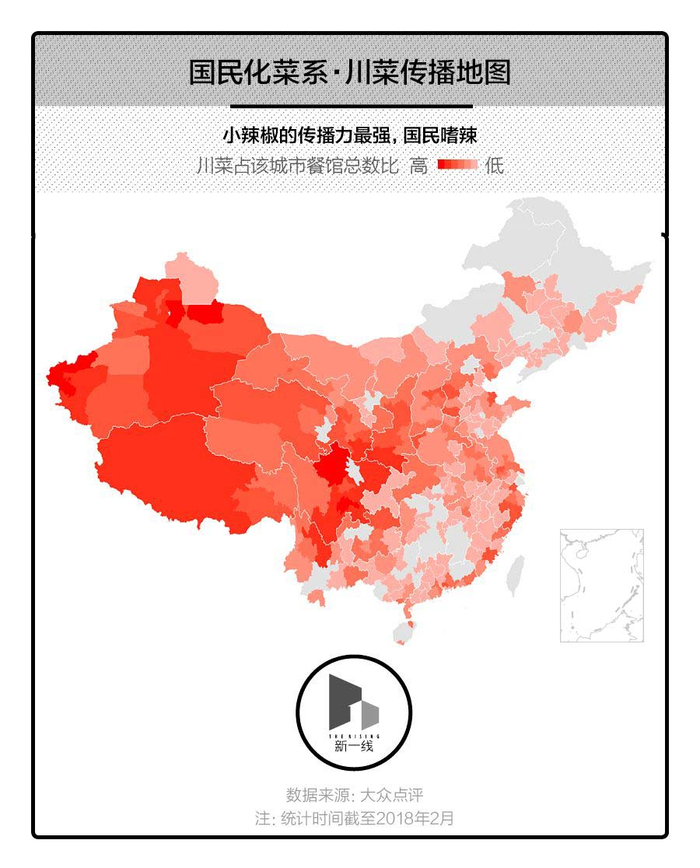 越来越像的城市餐饮格局与菜系本身的推广和传播有关。从全民嗜辣的今天来看,川菜无疑是传播度最广的菜系。