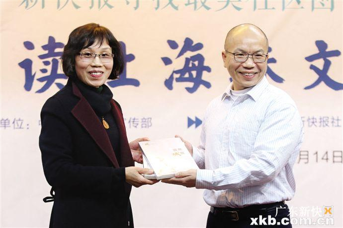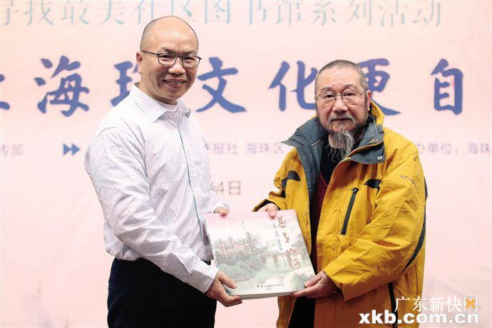 在活动中,广州市社会科学院岭南文化研究中心主任梁凤莲和著名画家司马江南分别向海珠区图书馆和读者街坊赠送了他们的作品《百年城变》《应愿之地》《瑶溪二十四景》画册等。