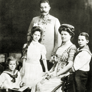 茜茜公主与约瑟夫一世皇帝和3个孩子 大约摄于1872年
