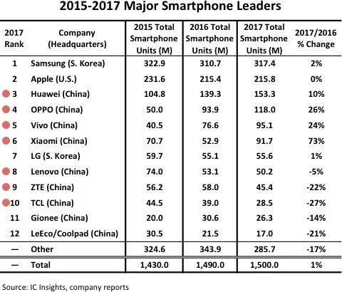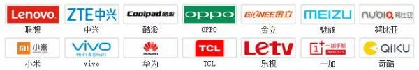 小米、联想、中兴、TCL