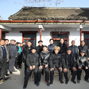 许家印夫妇和父老乡亲在自家院子里合影