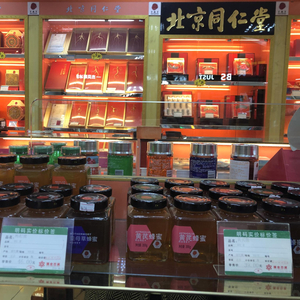 12月17日下午,第一财经记者来到同仁堂天山路门店和延安西路门店,两家门店均有蜂蜜产品在售。值得注意的是,延安西路门店所售名为药植蜜黄芪蜂蜜的产品,受委托方也是盐城金蜂食品科技有限公司,产地为江苏省盐城市。