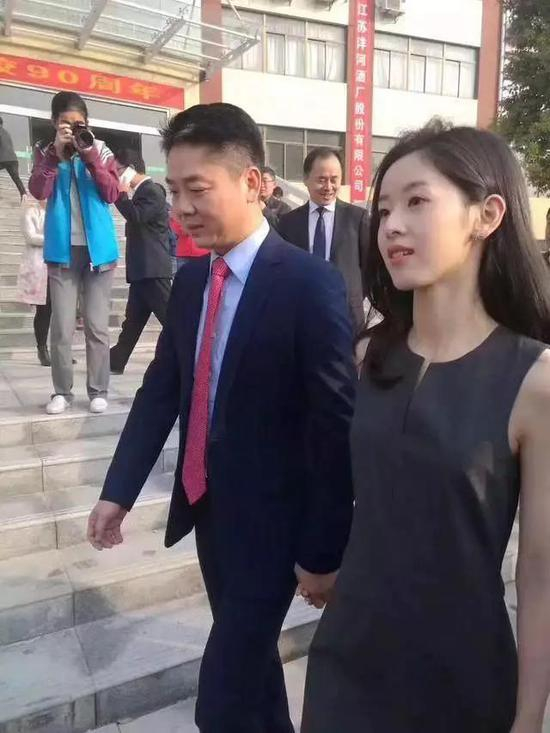 刘强东很喜欢携娇妻在家乡人面前亮相,发钱带着,回母校也带着。2017年10月,刘强东母校宿迁中学90周年校庆,秋风中章泽天一席无袖短裙亮相。