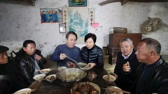 丁玉梅还和许家印一起吃了“忆苦思甜”饭。一盆煮白菜萝卜、一盆地瓜,还有几个碗里装着黑窝头……也是非常朴素了。
