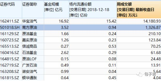 在所有的原油类场内基金中就是华宝油气和南方原油成交较活跃,其中最活跃的当属华宝油气,南方原油的周成交额约为华宝油气的十分之一。其他的原油基金?场内交易实在不活跃,建议投资者暂不要考虑。
