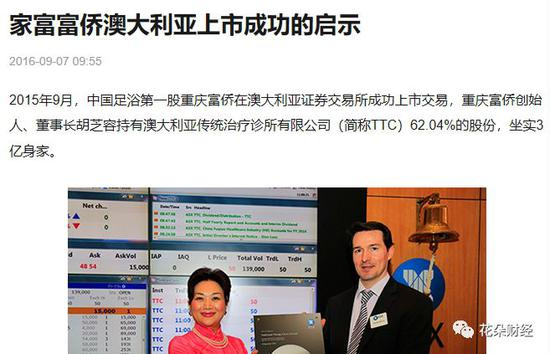 资深金融、创投界从业者尹沛峰告诉花朵君:2015年就不看好重庆富侨上市,因为“足浴行业在国内或香港上市皆背负着污名化的重负,但去澳洲上市又毫无群众基础。”