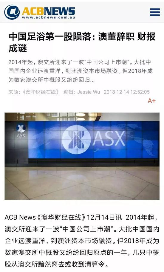 昨天,遥远的澳洲证券交易所发布了一个消息,掀不起全球资本市场的一丝波澜,但令大洋彼岸看到这个消息的中国人足底一麻——