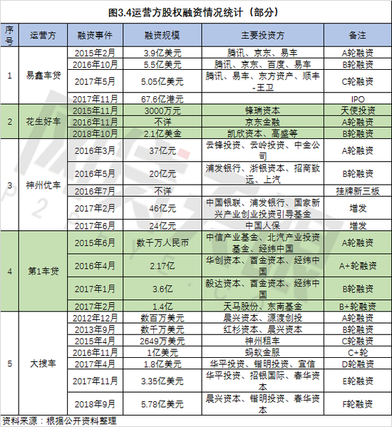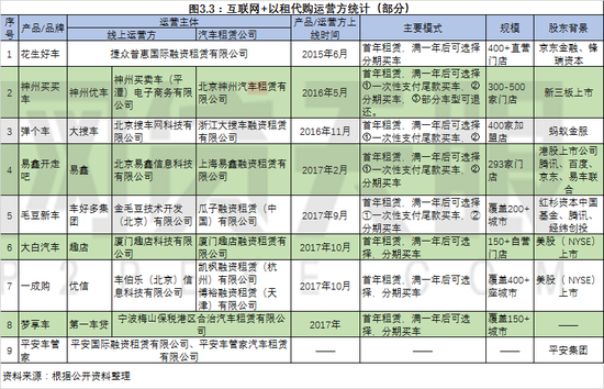 除上述主要运营方外,另有如喜相逢、易人易车、享购车等近百家参与互联网+以租代购的市场竞争。而从互联网+以租代购还处于尝试阶段的2015年开始,关于各大互联网+以租代购运营方的巨额融资消息从未间断。