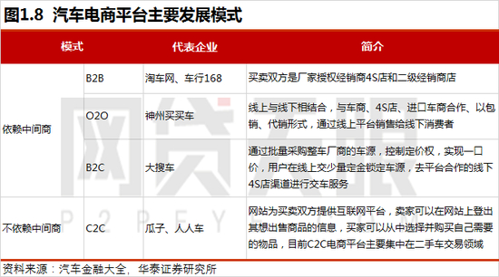 中国的二手车交易市场潜力大。中国二手车交易规模的基数较小,2016年首次突破1000万台,由于统计口径是交易次数,其中包含的批发和零售的交易量,2C的二手车交易量预计在600万台左右。中国二手车电商的渗透率近几年虽然在持续快速的增长,但相较于美国等发达国家,略显偏低,据统计,至2017年,我国二手车电商的渗透率仅为17.6%。从成熟的汽车市场来看,二手车交易规模远大于新车销售,美国的新车和二手车销售比例约为1:3。相比之下,中国的二手车市场潜力大。随着二手车交易环节车辆迁移问题、税收问题和产权登记问题的逐步解决以及置换需求的加速释放,二手车市场正迎来发展机遇。