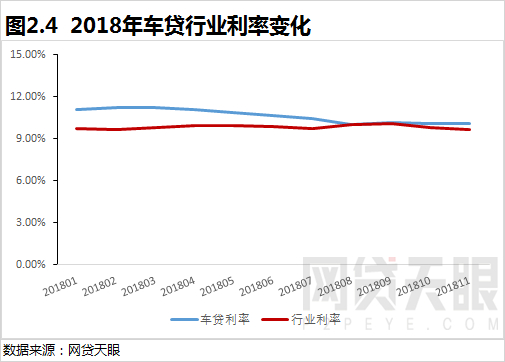 横向来看,从P2P车贷首次出现到现在,车贷行业交易占比经历了两次攀升和两次下降,2011年,车贷行业交易占比仅有1.6%,随后的几年行业占比均在6%以上,2016年,众多平台加大车贷资产配置,车贷规模占比高达11.4%,达到历史最高。随后,一路下降,截至2018年11月,车贷交易行业占比降至6.43%。