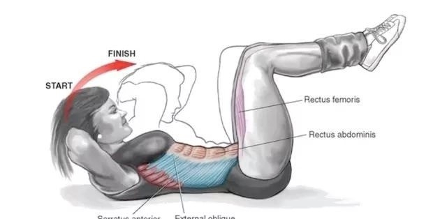 腹直肌:不管是4块、6块还是8块,全靠上腹。锻炼上腹的精髓就是两个字:卷腹。