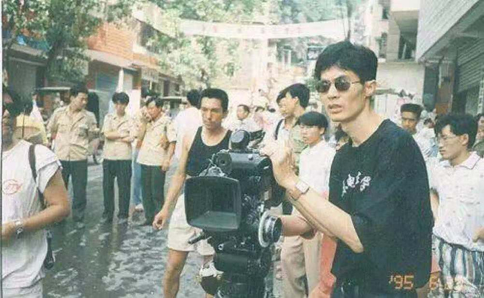1995年6月,章明在电影《巫山云雨》片场。