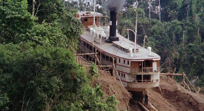80年代,有那个年代特有的光怪陆离的电影风景。也是在长江的客轮上,一个烟雾缭绕的放映厅里,稀稀落落有几个乘客在看一部碟片,一个金发碧眼的白人正指挥热带丛林里的土著,将一艘轮船抬到另一条河流。那是赫尔佐格的《陆上行舟》。放映厅的影碟里,还有寺山修司的《上海异人娼馆》。这类被今天的文艺青年顶礼膜拜的艺术片当时竟然可以让小县城的民工看得如痴如醉。