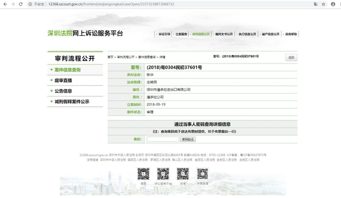 12月17日,记者查询发现,深圳市法院网上诉讼服务平台显示,原告为潘多拉公司(PANDORA A/S)(以下简称“丹麦潘多拉”),被告为深圳市潘多拉进出口有限公司(以下简称“深圳潘多拉”),立案时间为2018年9月19日。