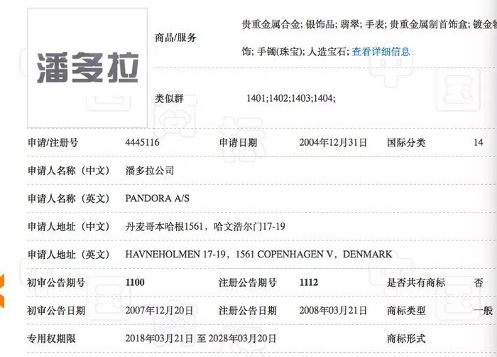 但实际上,深圳潘多拉获得“潘多拉”商标的时间比丹麦潘多拉更早。