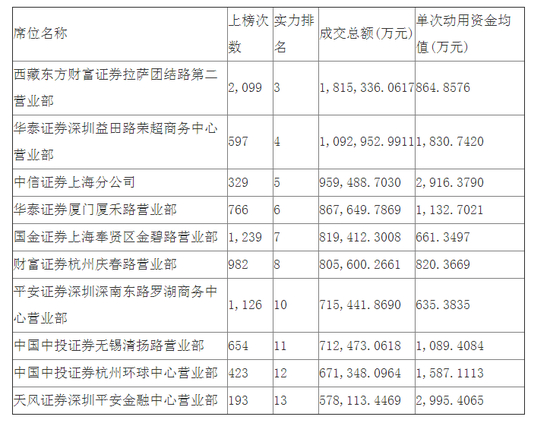 注:实力排名第1、2、9位分别为机构专用、深股通专用、沪股通专用席位数据来源:东方财富Choice数据