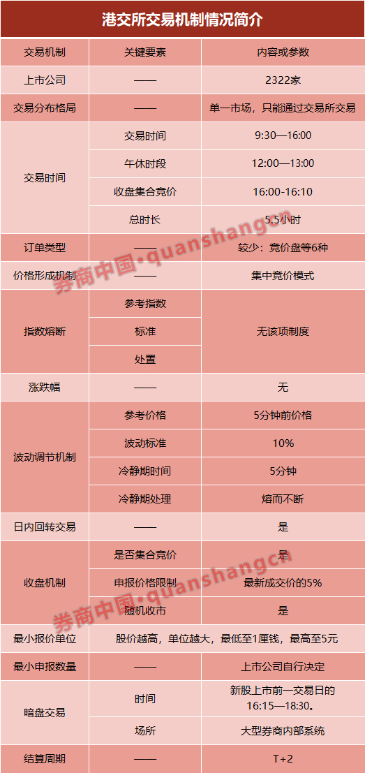 值得一提的是,港交所从2016年8月22日起实施价格波动调节机制,该调节机制只适用于恒生指数及恒生国企指数的成份股,以防止发生可带来连锁影响的极端价格波动及错误交易引致如“闪崩”等重大交易事故,缓解证券及衍生产品市场在极端价格波动下引致的系统性风险。如果适用证券的准成交价格偏离5分钟前的最后成交价超过±10%,便会开始一个 5 分钟的冷静期。在冷静期内,买卖允许在价格限制内进行。在冷静期后,将恢复没有限制的正常交易。