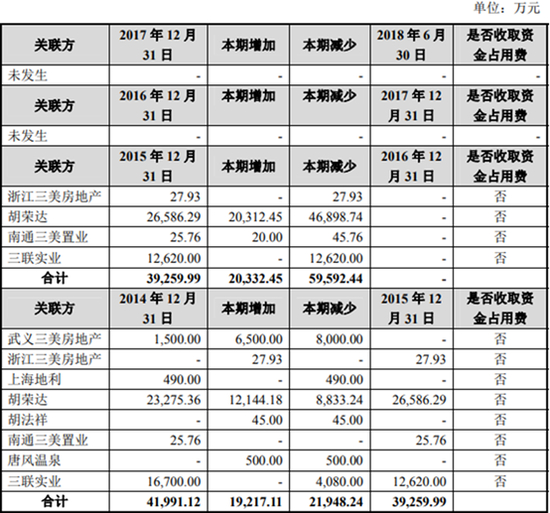 另外2014至2015年,三美股份还为实控人名下的武义三美房地产、发行人参股的浙江三美房地产、发行人曾参股的上海地利、实控人名下的南通三美置业、实控人参股的唐风温泉提供过数量不等的借款。对于数以亿计借给关联方的资金,三美股份均没有收取任何资金占用费。