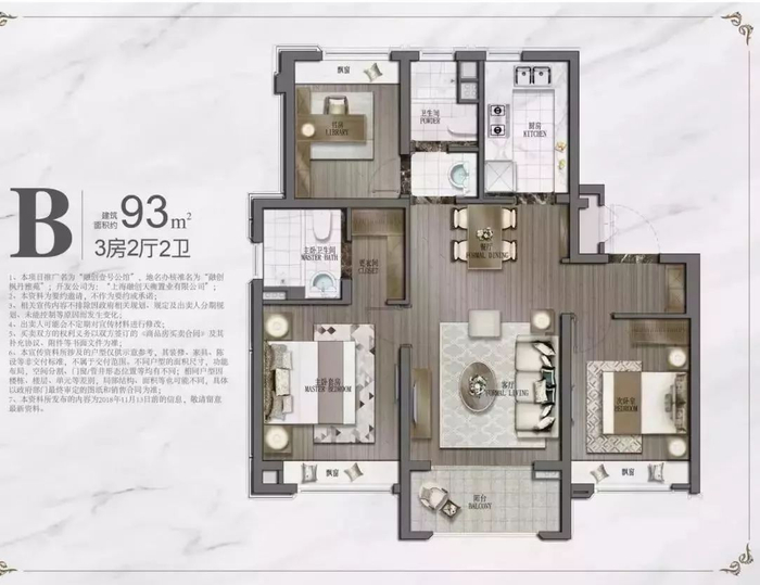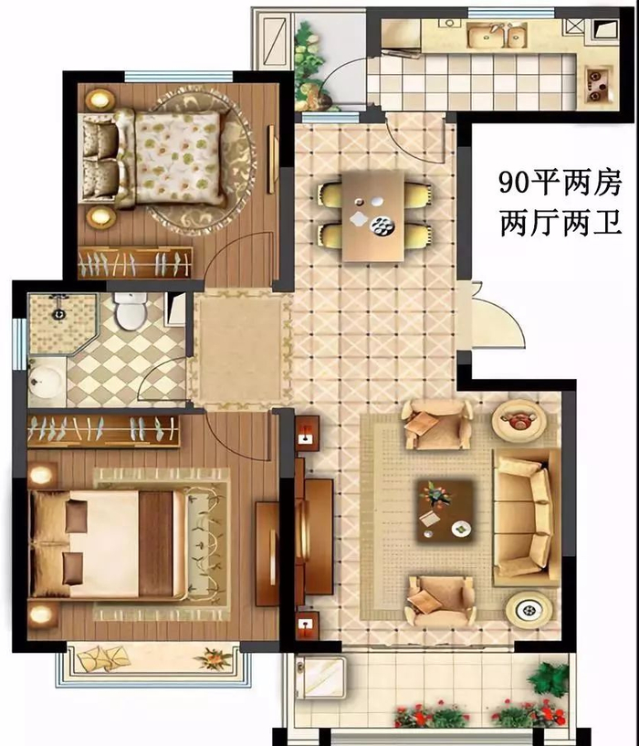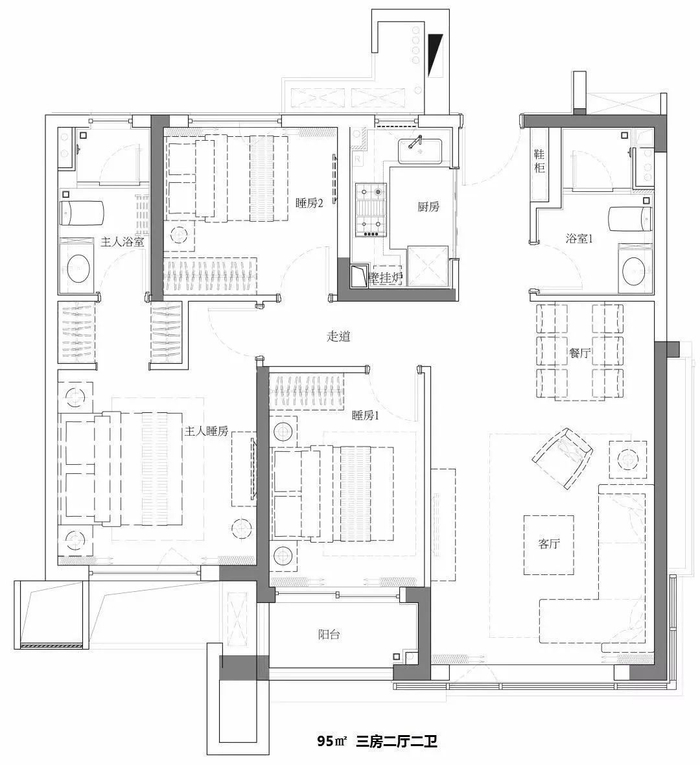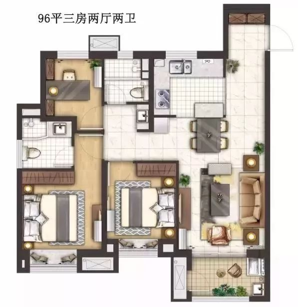 建面:90-119㎡ 三房