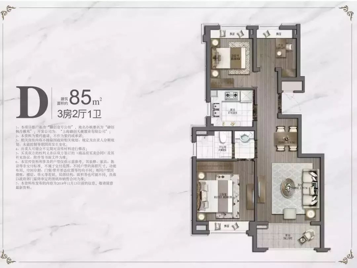 建面:85-121㎡的3-4房