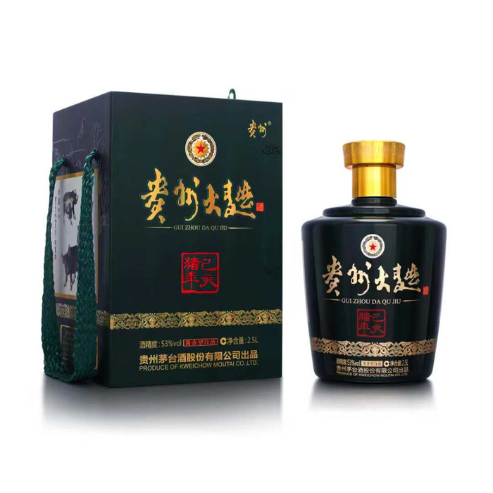 贵州大曲酒(己亥猪年),2.5L。著名画家史国良特别绘制《大福拱门》图,配以书法家胡秋萍潜心题写的《贵州大曲赋》,让人感到福气扑面生趣盎然,乃醇美臻选、品尝皆宜之佳品。