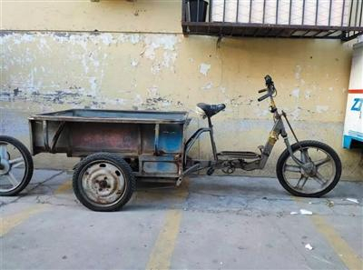 这辆人力三轮车是北京中通快递中关村网点的旧交通工具,2009年购入,2017年淘汰。如今,人力三轮车已被封闭式的电动三轮车取代。受访者供图