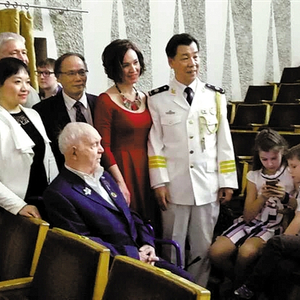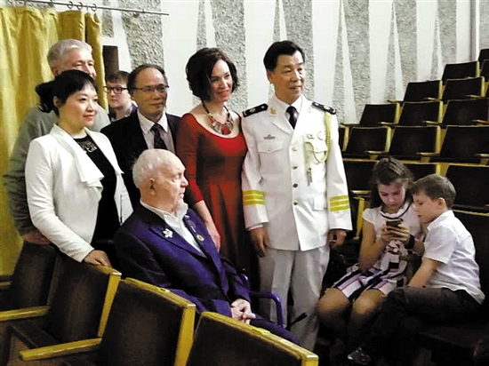 周建平、刘敏、吴志滨与93岁的《山楂树》作曲者叶·罗德金合照 李旻 摄