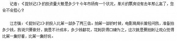 这就要说到成本。据出品人江志强在接受采访时透露的信息,《捉妖记2》的投资额是第一部的两到三倍,为了效果会不计成本,多少钱都会花。《捉妖记》加上后期的换角补拍,制作费3.5亿。2-3倍就是7-10.5亿。《捉妖记2》在春节档的宣发费用很高,外传的是超过2亿。按7亿制作费+2亿宣发费算,总成本9亿,8.26亿的票房分账都覆盖不了,至少亏7400万。如果成本更高,那亏空就会更多。