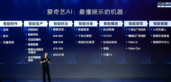 2017年6月,爱奇艺创始人、CEO龚宇在爱奇艺世界大会上发布了“做一家以科技创新为驱动的伟大娱乐公司”的企业愿景,之后爱奇艺宣布将会全面AI化。背靠已经“ALL IN AI”的科技公司百度成长起来的爱奇艺,也是国内最早提出要将AI应用到视频场景的流媒体公司。