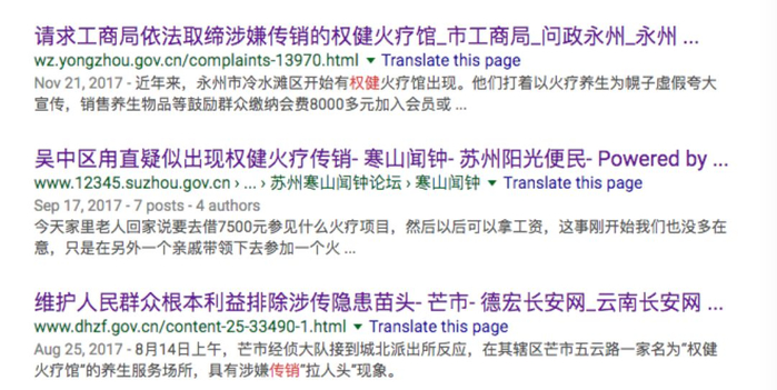 各地的市长信箱和工商部门官网,也有不少对权健传销的投诉和举报。