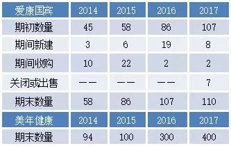 截至2017财年末(即今年一季度末),爱康国宾(包括并购基金)在33个城市设有110家体检与医疗中心,与2014财年末公司在15个城市拥有58家门店相比,三年的时间仅新增18个城市和52家门店。