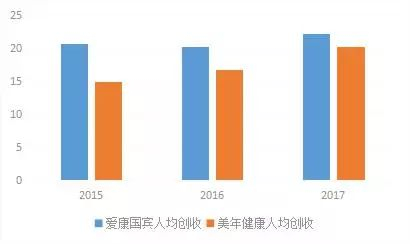 从另一个角度来看,爱康国宾的员工在2017财年人均创收约22.28万元,高于美年健康去年20.22万元的人均创收,这或与双方布局差异有关,爱康国宾客户集中于一二线大城市,收入水平高,而美年健康则在二三四线城市渗透率高。但爱康国宾2016财年人均创收同比却出现下降,2017财年增长还不到10%,而美年健康则持续增加,去年增幅超20%,二者差距也不断缩小。员工绩效增速乏力,却还饱受人力成本增长之困,也是爱康国宾未来面临的一大考验。