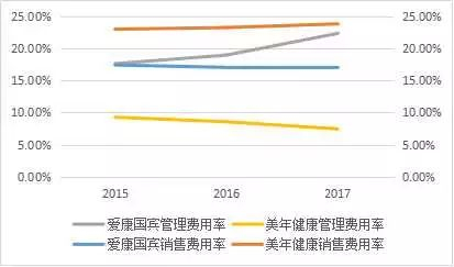 爱康国宾和美年健康销售费用率和管理费用率情况 资料来源:Wind