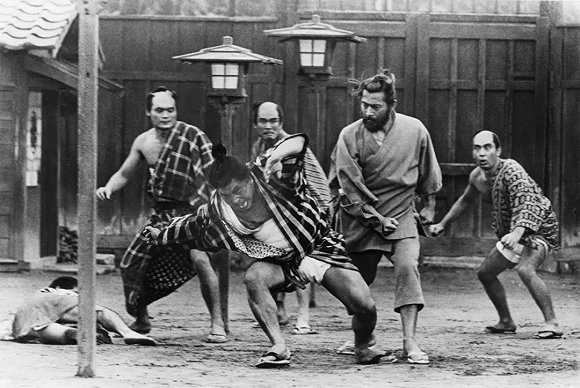 如果说原节子是小津安二郎的缪斯,那么三船敏郎同样完美贴合了黑泽明一心想要打造的银幕形象。在二人关系最好的时候,三船甚至在《用心棒》和《椿三十郎》中,穿着绣有黑泽家徽的和服。无论黑泽明在片场如何霸道,对三船敏郎依然是惜才爱才,而三船敏郎无论如何胡闹,也不敢在黑泽明面前造次。喝醉了酒在黑泽家附近开车乱闯什么的,黑泽明也不以为然。既然亲厚如斯,后期的分离又所谓何事?