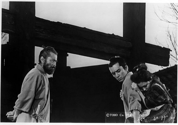 即便《红胡子》并不像《椿三十郎》《七武士》那样设置具体的武士角色,但三船敏郎所扮演的名医“红胡子”,同样具有武士阶层的意识形态,对于社会具有某种超然于物外的责任感,高度符号化的英雄式存在,某程度上也直接导向了禁欲主义。