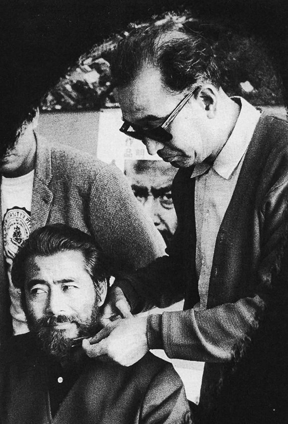 黑泽明(左)与三船敏郎在拍摄《红胡子》期间的合照