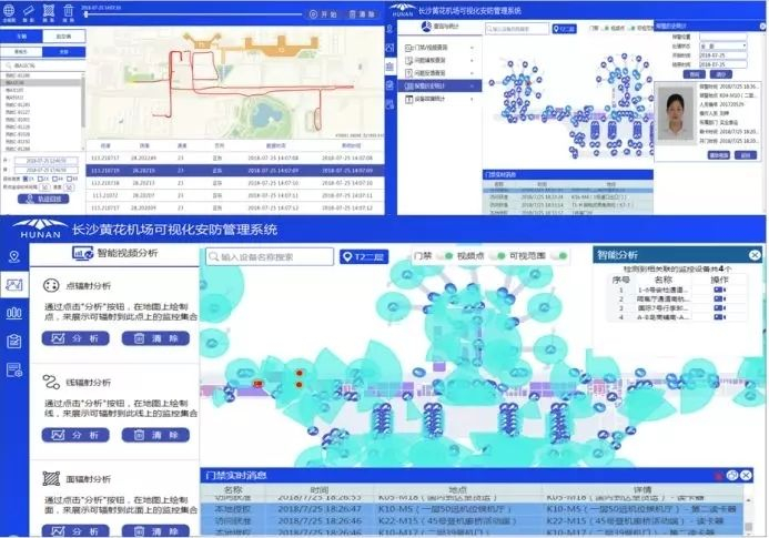 2018年10月,完成智能安防监控系统升级。对视频资源、门禁、围界、报警等各类安防业务数据进行联通融合,实现安全运行和指挥调度的可视化智能分析和资源管理,大幅提升了机场的安全防范能力。