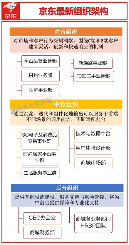 继BAT、小米美团滴滴后,最近,京东以赶末班车的姿势发布最新的组织调整,比起传统的事业部/群调整,京东首次采用“中台”的组织架构概念。