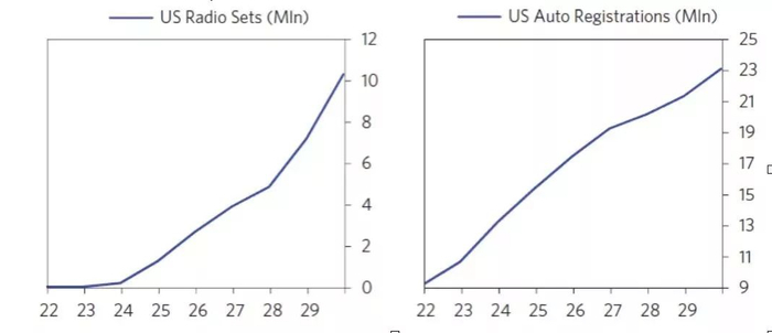 在经历了第一次世界大战以及之后的经济衰退,美国经济开始经历了由科技引领的快速增长。美国中小城市的城镇化以及中产阶级的崛起,给新的技术带来了巨大市场。比如那时候的收音机数量从1922年的6万台增长到了1928年的750万台。汽车行业快速增长,到了1929年,美国实现了2300万的汽车保有量,每五个美国人中就有一人拥有汽车。科技进步驱动了生产效率的提升,1922到1928年美国工人生产效率提高了75%。