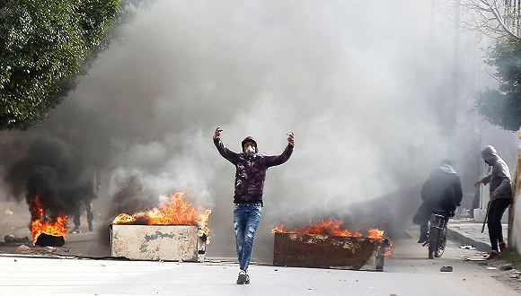 12月25日,突尼斯卡塞林,抗议者与警察发生冲突。图片来源:视觉中国