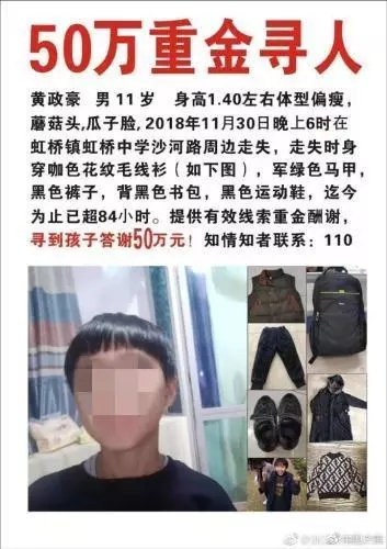 案情简介:11月30日晚,浙江乐清警方接到一名11岁男孩的母亲报警,称孩子于当天下午在放学回家途中失联。接报后,警方连夜开展寻人工作,同时,寻人的消息在各大社交平台也被大量转发,孩子的父亲更是发布消息表示愿意“重金寻子”。