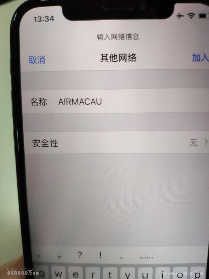 打开手机Wi-Fi,找到了AIRMACAU无线网络。
